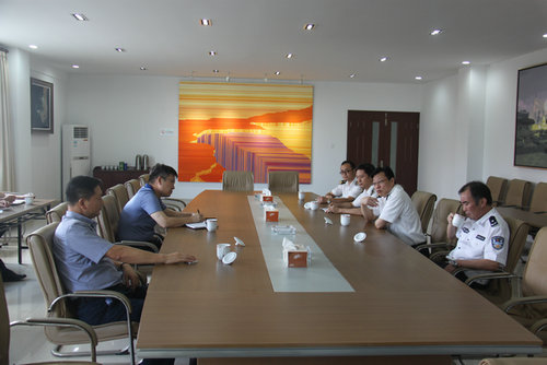 圖為調(diào)研會(huì)現(xiàn)場(chǎng)(右二林關(guān)長(zhǎng)、左一黃副區(qū)長(zhǎng)、左二蔣董事長(zhǎng))